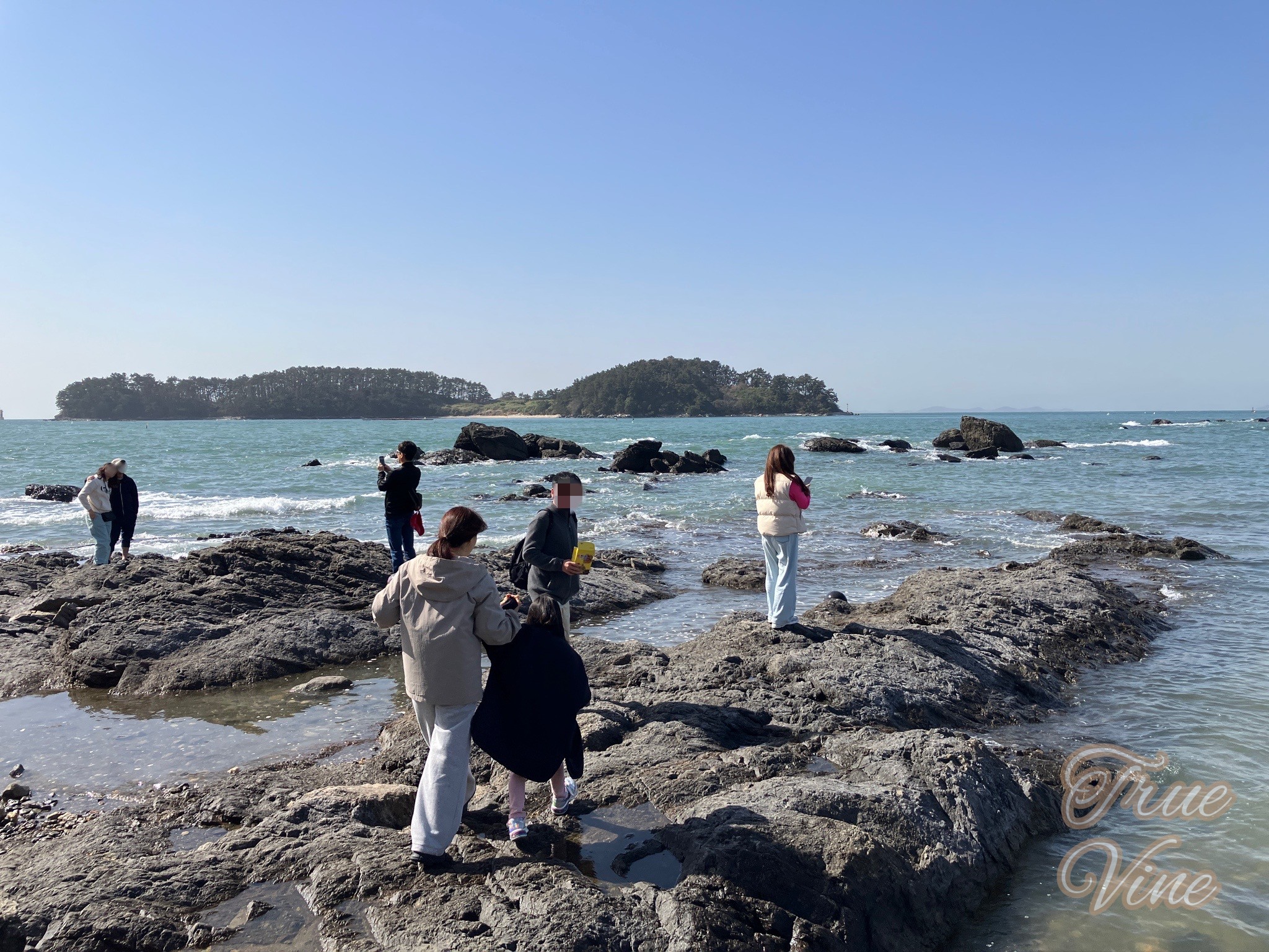 あいにく私の行った時間は島への道は海の中でしたが、途中までは橋で渡ることができ、磯で小さな巻貝や海藻を観察することができました。ひじきに似た細い草のような海藻はコッシレギといって食べられるそうで、袋に一杯採集している人もいました。水はすごく澄んでいてきれいでした。