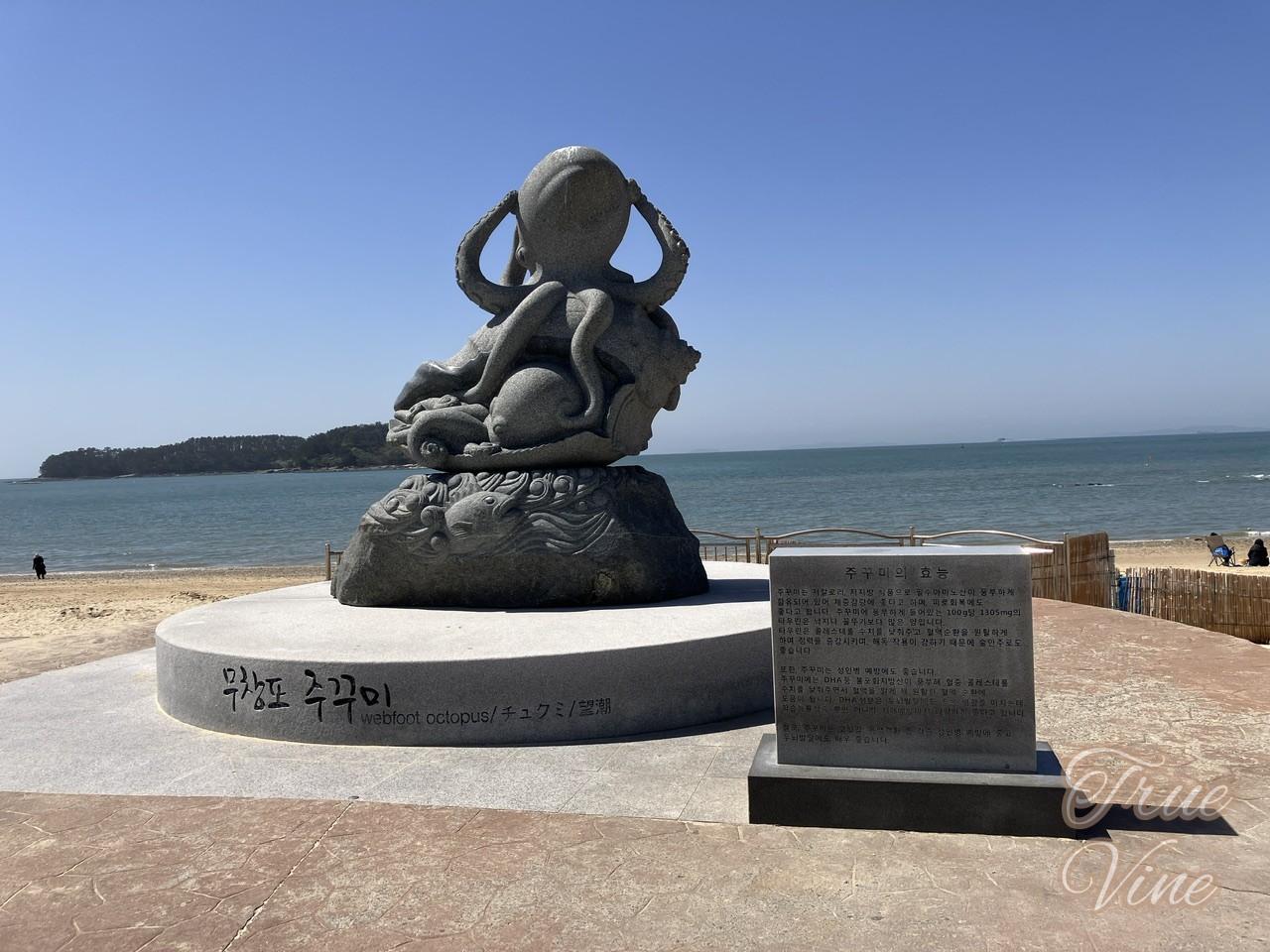 浜の中央には名産のタコの石像もありました。
