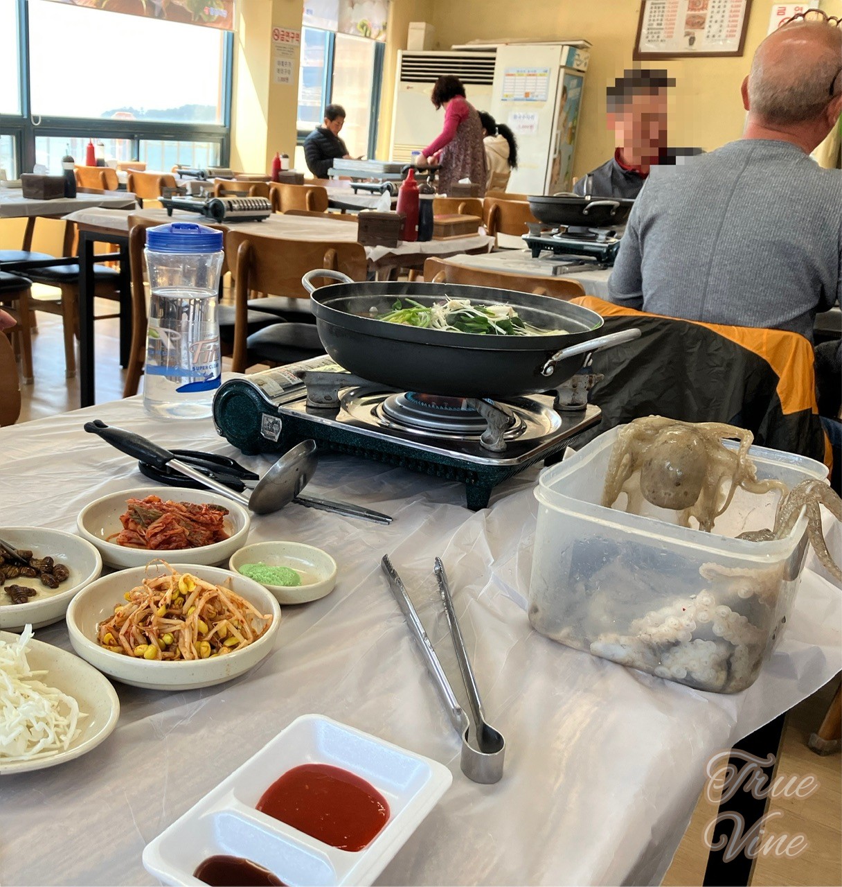 ここではテーブルセットと調理代が1万5千ウォンほどかかりますが、海を見下ろしながらすぐに新鮮な海産物が食べられます。