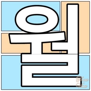 ㅝ : (ㅜ+ㅓ) 「ウ」と「(口を大きく開けた)オ」が合わさって「ウォ」と発音されます