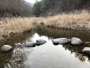鶏龍山(계룡산:ケリョンサン)に入れる登山道の入り口は何か所もありますが、そのうちの一つに大田市側の渓谷「スットンコル」から登る道があります。国立大学のハンバッ大学(한밭대학교)からすぐ近くのところです。お寺がある登山道は入山料をお寺に納めないと山に入れないのですが、こちらはお寺がなく無料で入れます。本格的な山道になる前の開けた渓谷沿いに散歩道が整備されていて、たくさんの人が訪れます。夏には渓谷に入って遊ぶ子供たちでにぎわいます。渓谷には小魚がたくさん住んでいます。