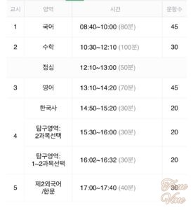 こちら韓国にもセンター試験のような共通試験があります。みんな略してスヌン(ハングルでは수능:修能)とかスヌンシホm(수능시험:修能試験)とか言いますが、正式名称は大学修学能力試験(デハk スハk ヌンリョk シホm:대학수학능력시험)と言います。